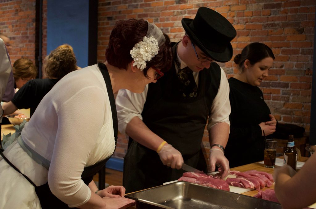 About 3 years ago I had the chance to officiate, as well as participate in, the wedding and reception of Cassie Dyson and Alex Collier. It was one of the most interesting wedding approaches I’ve had the joy of experiencing in the 9ish years I have been doing this. They met in Japan and geeked out over Mech / Gundum robots while they were there, so the two of them built Voltron from the individual lion ships as their unity ceremony. The wedding and reception were held at a place called The Kitchen down in the brewery district and the unique thing about that place is they have everyone be a part of making the meal. Food and sauce prep was done in teams by all of the guests with an instructor of sorts from The Kitchen to show us what to do. I was on the chicken chopping team and oh, did we chop some chicken. Once done, the crew there cooked everything for us in the back and later served it to us. We made curry chicken and it was seriously one of the neatest receptions I’ve been to. The food was super yummy, but the set up had us all interacting with new people and really being engaged with participating in the experience. I loved it.