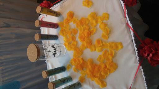 Every once in a while I have the chance to work with a couple who are truly inspired by something as a theme or backdrop for their wedding and I love seeing just how people choose to incorporate those inspirations. For this wedding, everything was about The Day of the Dead. This wedding actually took place on the actual Day of the Dead and featured many delightful thematic touches. From the traditional colorful paper decorations (Papel Picado) to the Ofrenda which took up almost all of one wall, to the ground strewn with marigold flowers, this small family wedding was amazing. I had the chance to flavor my ceremony with a little Latino Zest as well, marking it as a celebration of family and of a love that crosses the divide. It was very cool. Congrats again to Heather and Shawn!